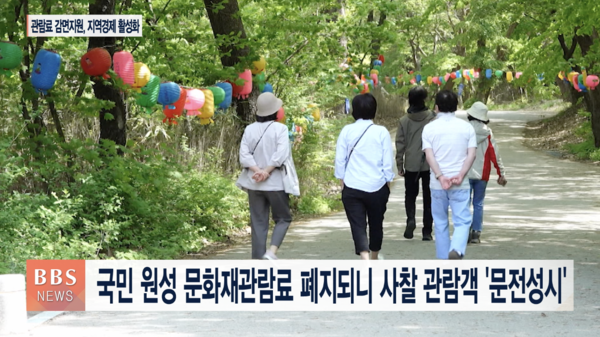 문화재 관람료가 61년만인 지난 5월 전격폐지되고 정부가 지원에 나서면서, 사찰 관람객이 급증하고, 사찰이 속한 지역의 경제활성화에 청신호가 켜지고 있습니다.