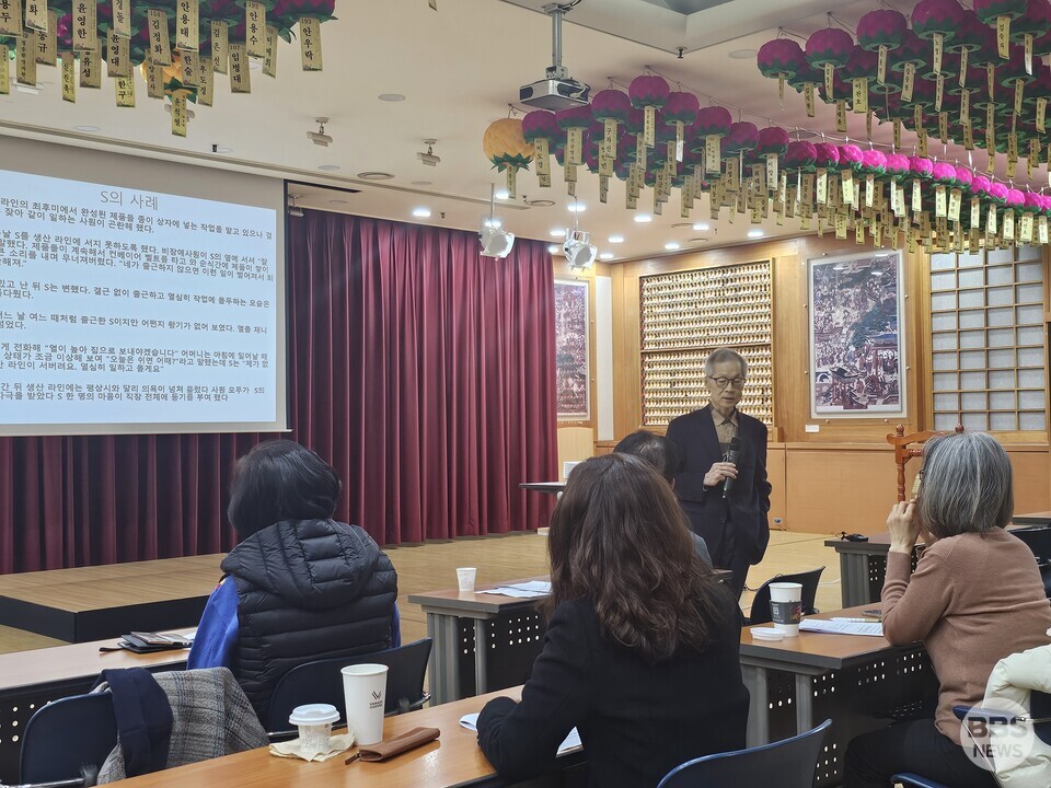 대표적인 불자 지식인이자 21세기 비즈니스포럼 공동 대표인 노부호 서강대 명예교수가 직장인들의 일하는 행복을 주제로 특별한 강연을 펼쳤습니다.