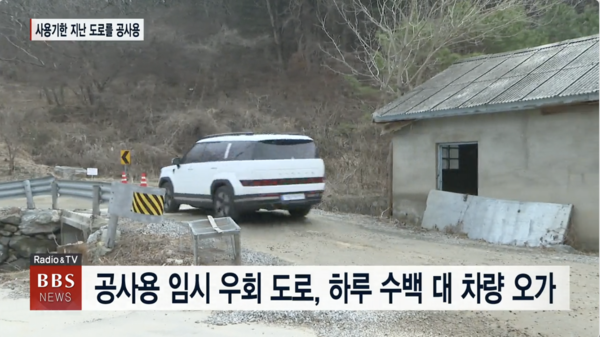 “당연히 임시도로(우회도로)는 이제 없는 게 맞겠죠. 없어지는 게 맞는 건데. 사실은. 이거는 원상회복에 대한 의무 면제 대상도 되기 때문에 저희가 원상회복을 안 시켜도 되는 부분도 있거든요. 그래서 지금 사실은 그건 고민 중에 있습니다. 검토 중에 있습니다.”
