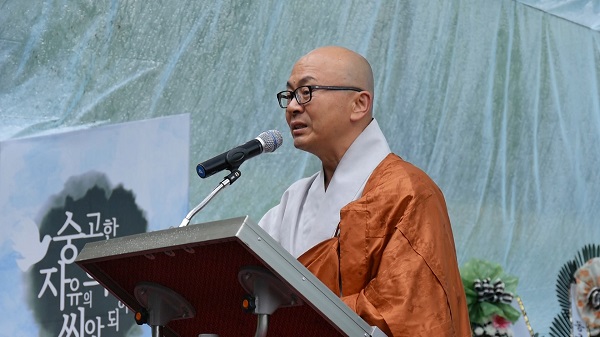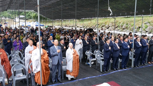 비가 오는 가운데 열린 추모식에는 견불사 보덕스님, 벽송사 원돈스님, 임창호 함양군수, 강석진 국회의원 등이 동참했습니다.
