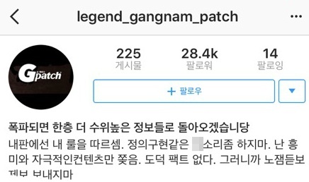 앞서 정 씨는 지난해 SNS의 일종인 인스타그램에 '강남패치'라는 이름의 계정을 만들어, 유명 블로그 운영자 등에 대한 소문을 사실 확인 없이 게재한 혐의로 재판에 넘겨졌습니다.