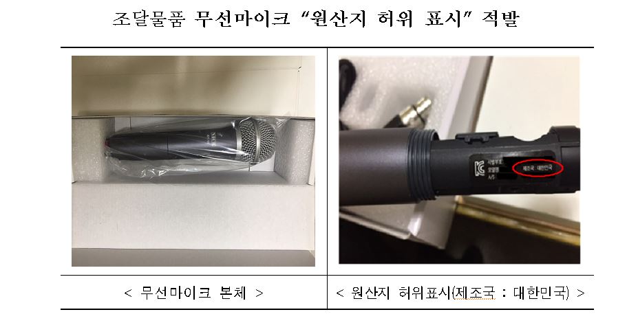 조사결과, A사 등 5개 업체는 저가 중국산을 포함해 외국산 무선마이크와 스피커 등 4천 9백여점, 시가 22억원 상당의 물품의 원산지를 국산으로 둔갑시켜 관공서에 부정 납품한 것으로 드러났습니다.