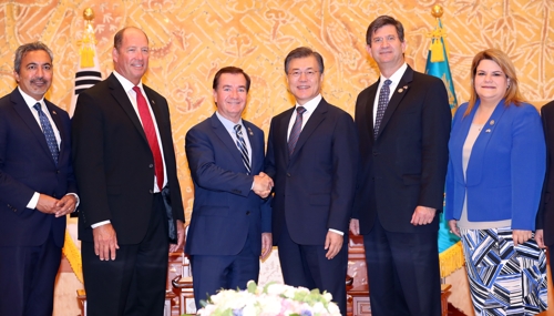 문재인 대통령은 오늘 오전 청와대에서 미 공화당 소속의 에드 로이스 하원 외교위원장 일행을 접견했습니다.