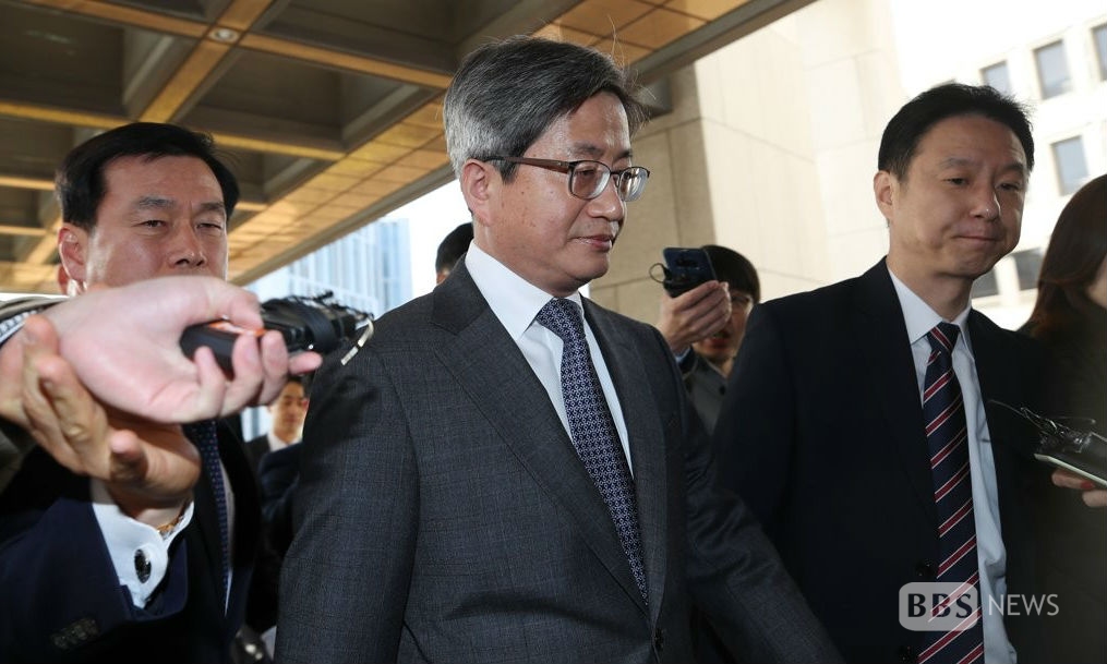 김명수 대법원장은 차에서 내리지 않은채 정문을 그대로 통과했다고 대법원은 전했습니다.