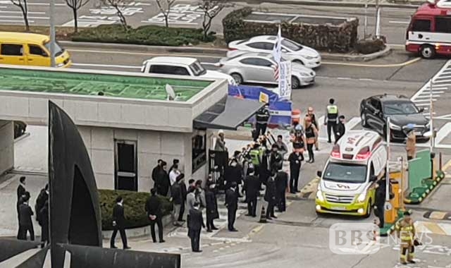 페트병은 대법원장의 차량 뒷 타이어에 맞아 불이 붙었지만 대법원 보안 요원이 곧바로 소화기로 진화해 큰 피해는 없었습니다.