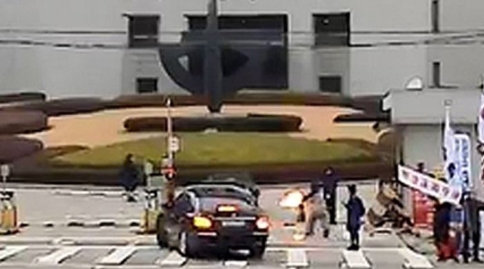 서울 서초동에 위치한 대법원 인근에서 70대 남성이 출근을 하던 김명수 대법원장의 차량에 화염병을 던지는 사건이 발생했습니다.