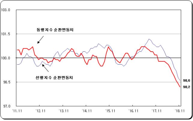 또 현재 경기상황을 보여주는 ‘동행지수 순환변동치’도 전월 보다 0.2포인트 떨어졌습니다.