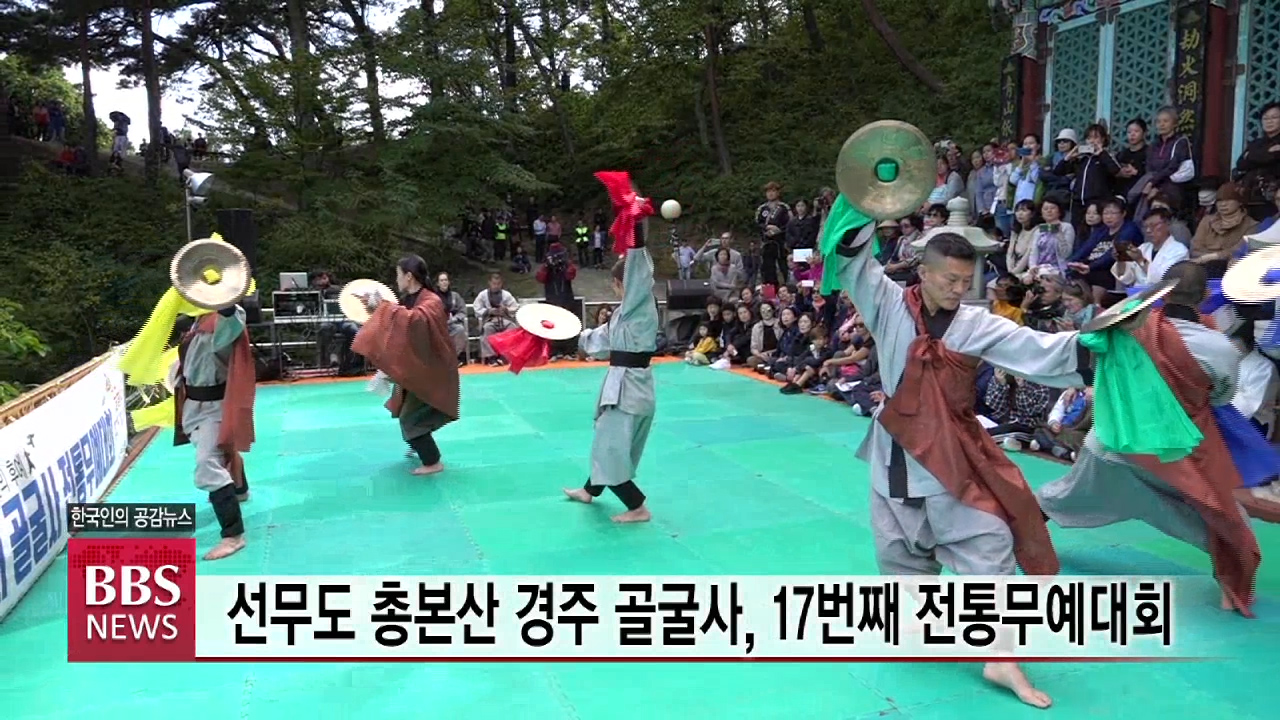 골굴사는 지난 주말 경내 대적광전 앞에서 전통무예대회와 선무도 승단심사를 진행했습니다.