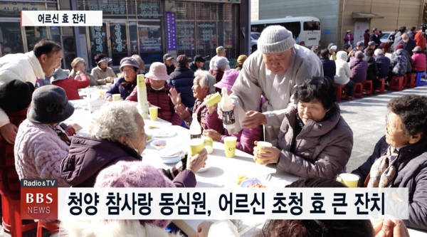 충남 청양의 불자 자원봉사단체인 참사랑 동심원이 설립 20주년을 맞아 올해도 추운 겨울을 앞두고 지역 홀몸 어르신과 어려운 이웃들을 위해 '효 큰 잔치'를 열었습니다.