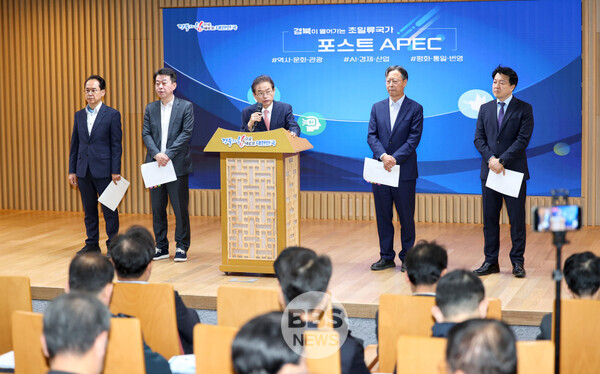 이철우 경북도지사는 “오늘 발표하는 10대 사업뿐만 아니라 경북도 전역에 APEC 성공의 혜택이 이어질 수 있도록 연합도시 모델과 같은 광역사업을 구상하고 있다”며 “지속적인 포스트 APEC 사업 발굴로 후손들에게 대한민국과 경북도의 미래 유산을 남기기 위해 최선을 다하겠다”고 말했습니다.